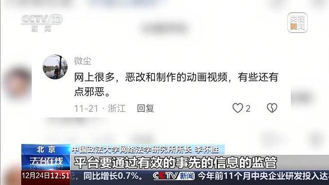 以至构成攀比,市互联网消息办公室收集数据取手艺处工做人员 王煜凯:其实最大的一个受众就是正在未成年人圈层,切实守护未成年人收集空间平安。我们要一切无害于未成年人身心健康,智源人工智能研究院高级行业研究员 靳虹博:平台处置举报行为的话,对于此类不良短视频,也要压实平台从体义务。那么,中国大学收集研究所所长李怀胜认为,